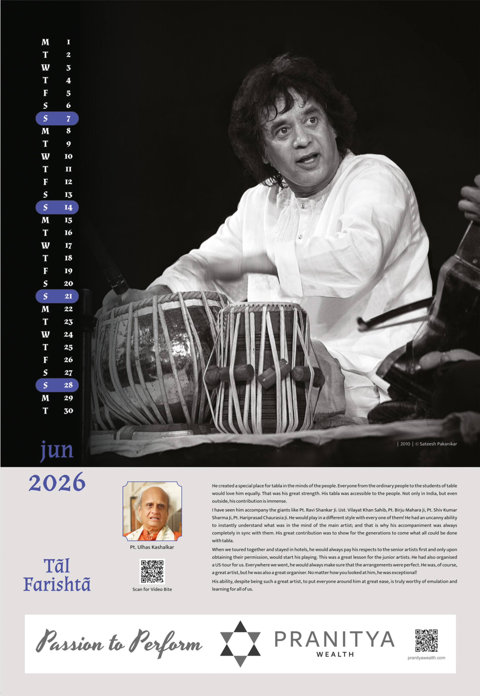 Ut. Zakir Hussain - Collectible Photo Calendar 2026 | Taal Farishta